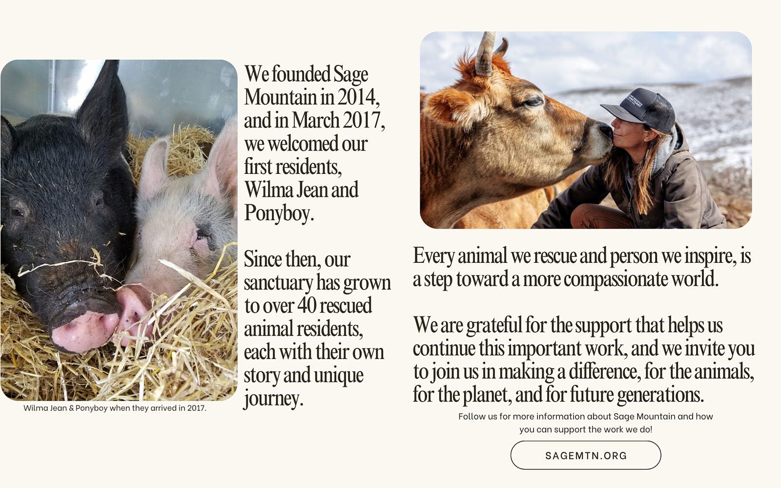 For details to get involved with visiting or volunteering, visit our website here, or reach out to us via email at info@sagemtn.org.